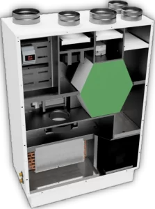 La Serie LET C consiste in unità all-in-one che oltre a fare ventilazione meccanica controllata è in grado di deumidificare e di apportare anche una piccola integrazione in caldo e freddo.